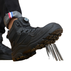 922 Nieuwe Ontwerp Veiligheidsschoenen Voor Heren Zwarte Draaibare Knoopsneakers Met Stalen Neus Lichtgewicht Voor Alle Seizoenen-Werk Zonder Kant