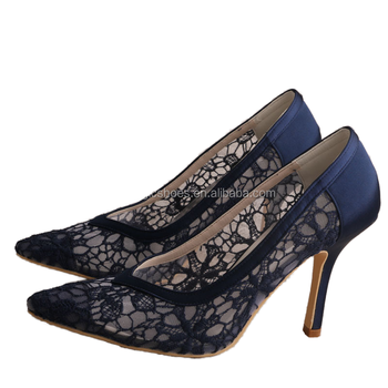 รองเท้าหุ้มส้นสีน้ำเงินเข้มของผู้หญิงรองเท้าส้นรองเท้ามีสายรัดข้อเท้า3-8ซม. ปิดส้นขนาดพิเศษสำหรับงานแต่งงาน
